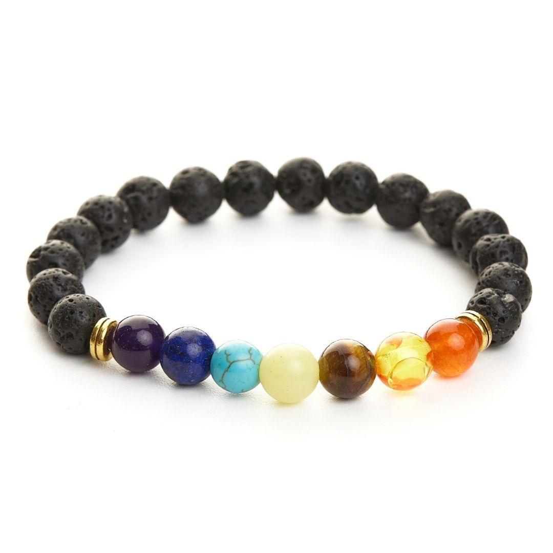 The ancients describe the seven chakras as the wheels of the natural energy cycle coursing through your body. It is believed the energy that flows through you is the life force that connects your physical, emotional, and spiritual balance. The crystals in this bracelet absorb the negative energy blocking your chakras, resulting in a balanced flow of energy.