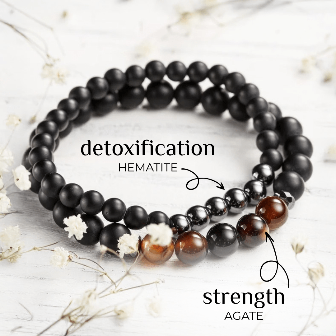 Set your sights on a bold look when you pair these powerful and stylish Hematite & Agate Bracelets!