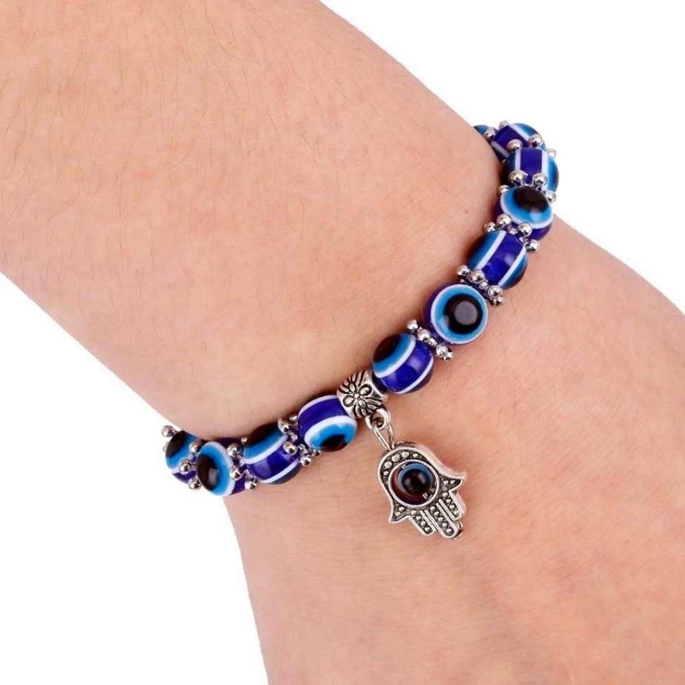 The palm-shaped amulet is highly popular in the Middle East. Throughout history, the open hand is recognized as a sign of protection from the forces of evil. Today, by wearing the Blue Hamsa Hand Evil Eye Bracelet, you can rest knowing your path to happiness will be safe and protected by the Hamsa Hand.