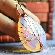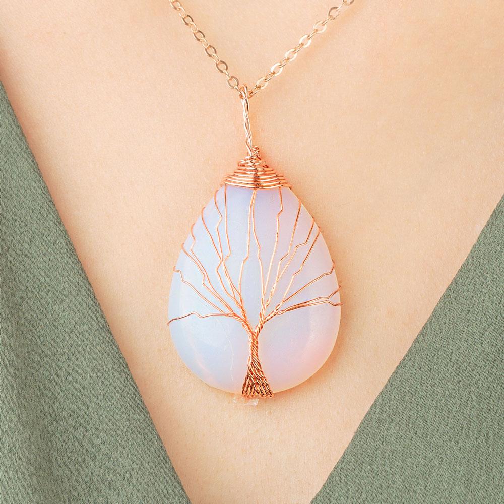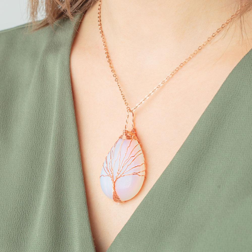 Tree of Life Opalite Necklace has branches that reach into the sky and roots that dig into the earth, all of these join into the endless circle of the knot, symbolizing the interconnectedness of heaven, earth, and all living things!