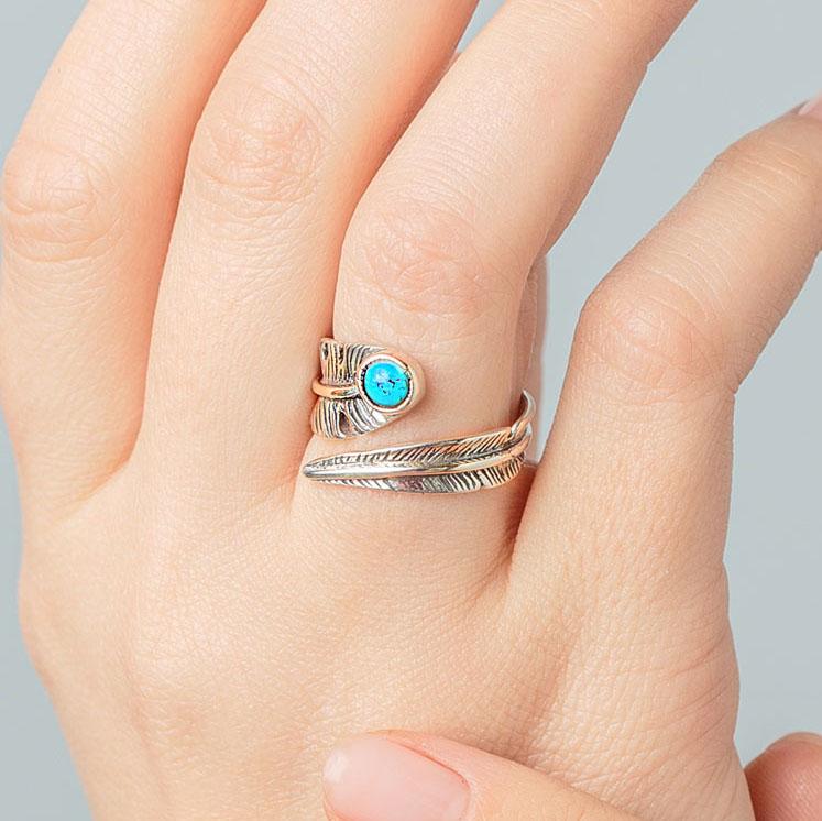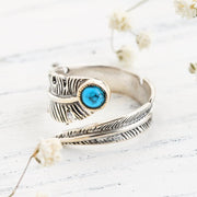 Sculpted with delicate details to mimic the look of a natural feather, this wrap-around sterling silver Freedom Feather Turquoise Ring features a real turquoise stone, which adds its own healing properties.