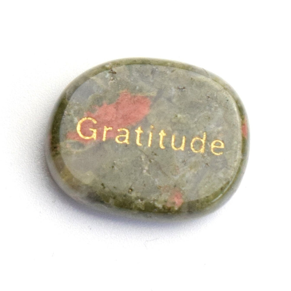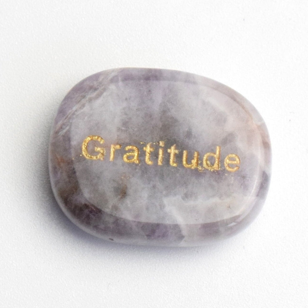 Holding an Inspiring Gratitude Natural Stone in your hand is a strong ritual that can help you meditate and reflect upon the things you're thankful for.