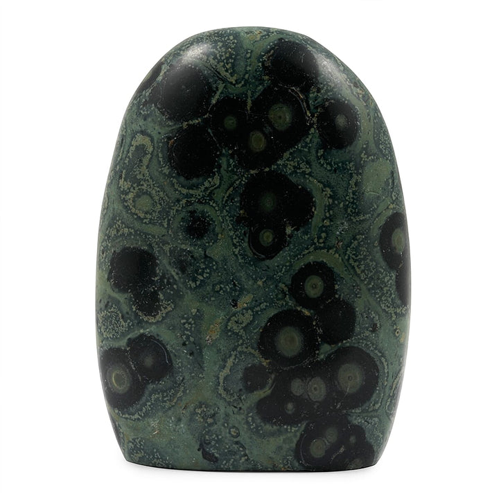 Organic Freeform Shape: The natural shape highlights the stone’s unique texture and rich, green patterns, ensuring each piece is one of a kind.