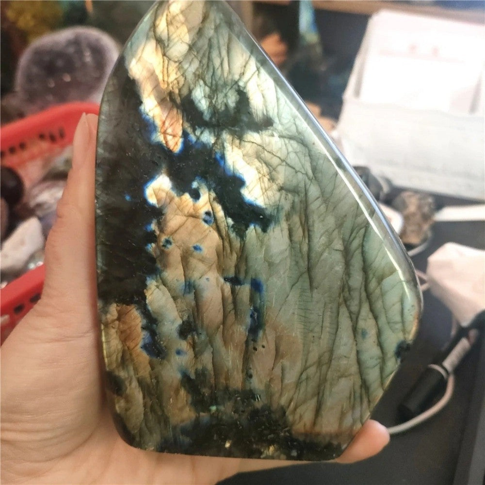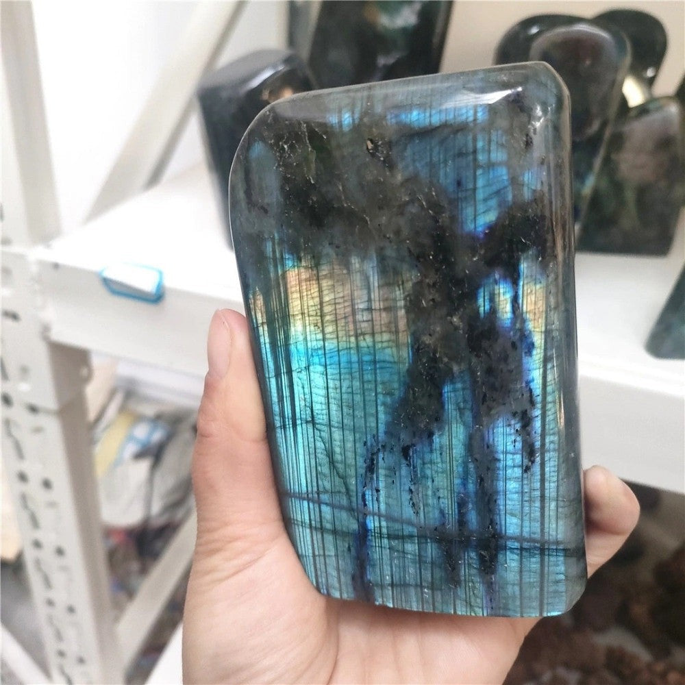 If you're feeling truly adventurous in your spiritual journey, consider our largest labradorite option weighing 2.86 - 3.30 Lbs - a piece that will take you to uncharted territories of newly found spirituality and power!