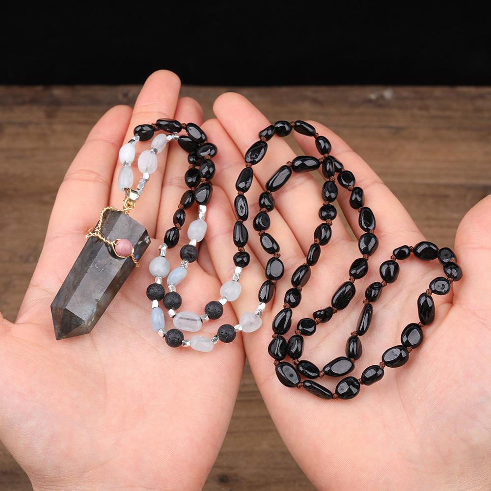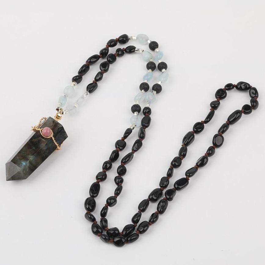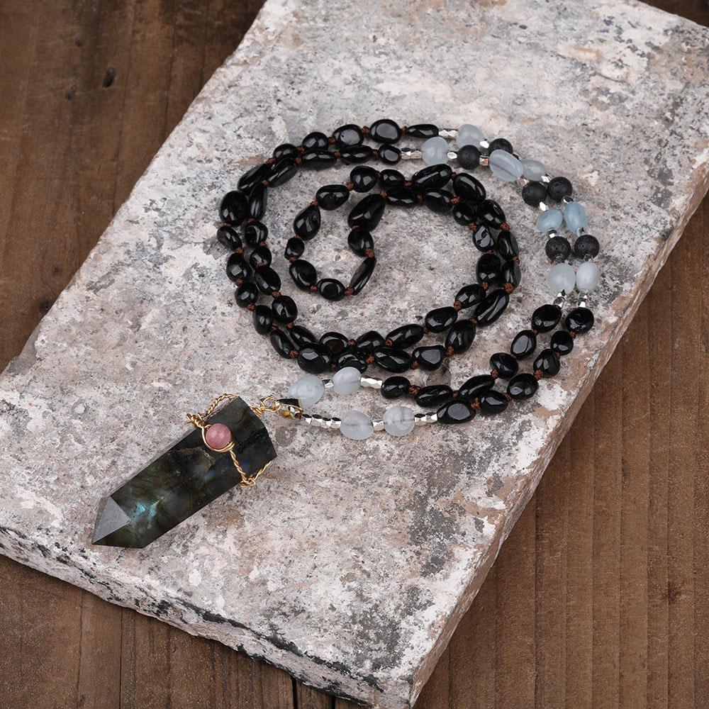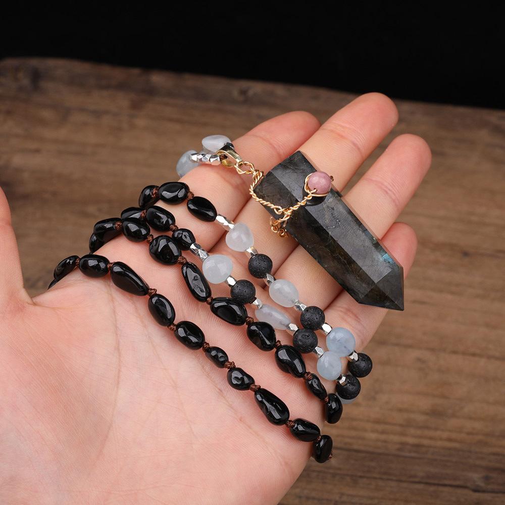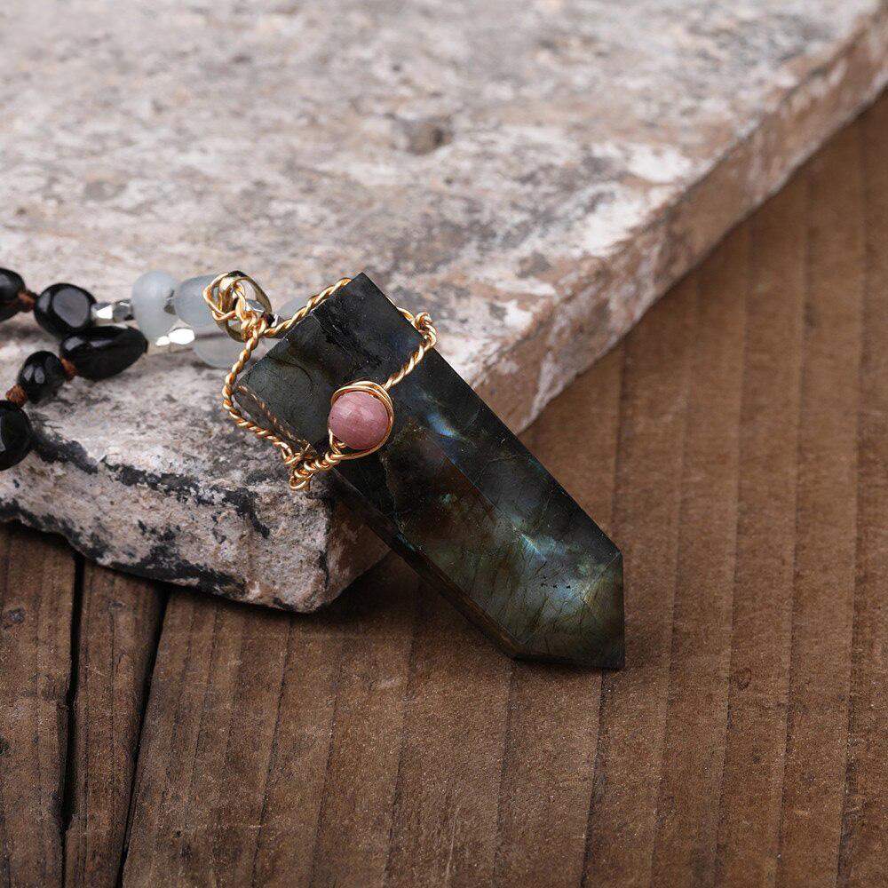 Who said jewelry has to be minimal? This labradorite point necklace combines a crystal point shape with gemstone beads to create a unique piece of labradorite jewelry.