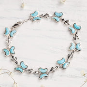 The enchanting beauty and the mysteries of the sea are perfectly captured in this stunning Larimar Butterfly Bracelet. Accented with a cushion-cut Larimar gemstone this bracelet will surely make a lasting impression. Classic, timeless, yet so unique, just like you.