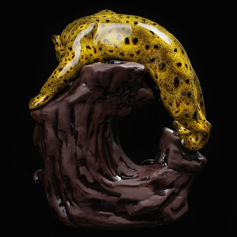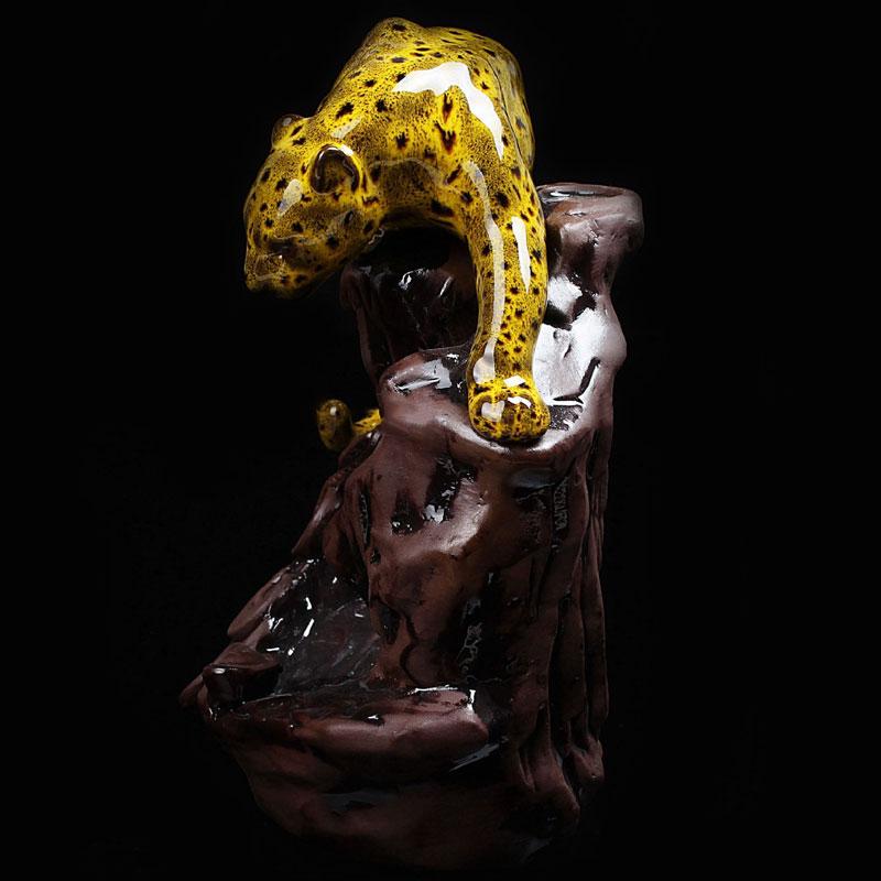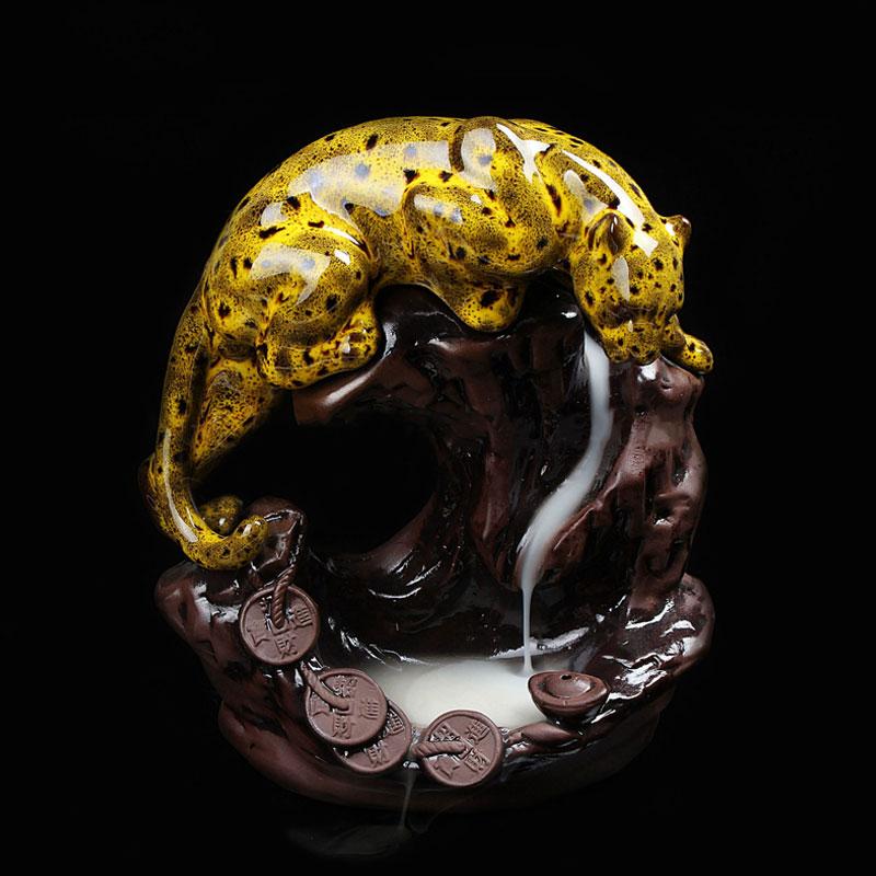 The smoke gracefully comes down from the leopard's mouth, creating a mesmerizing and calming atmosphere in any room.