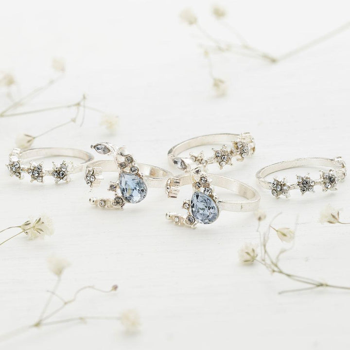 The stars were always magical and inspiring symbols of the dark sky. They represent our desires, goals, faith, and hope. Wear this Lunar & Stars Bliss Ring Set as a message of a new beginning.
