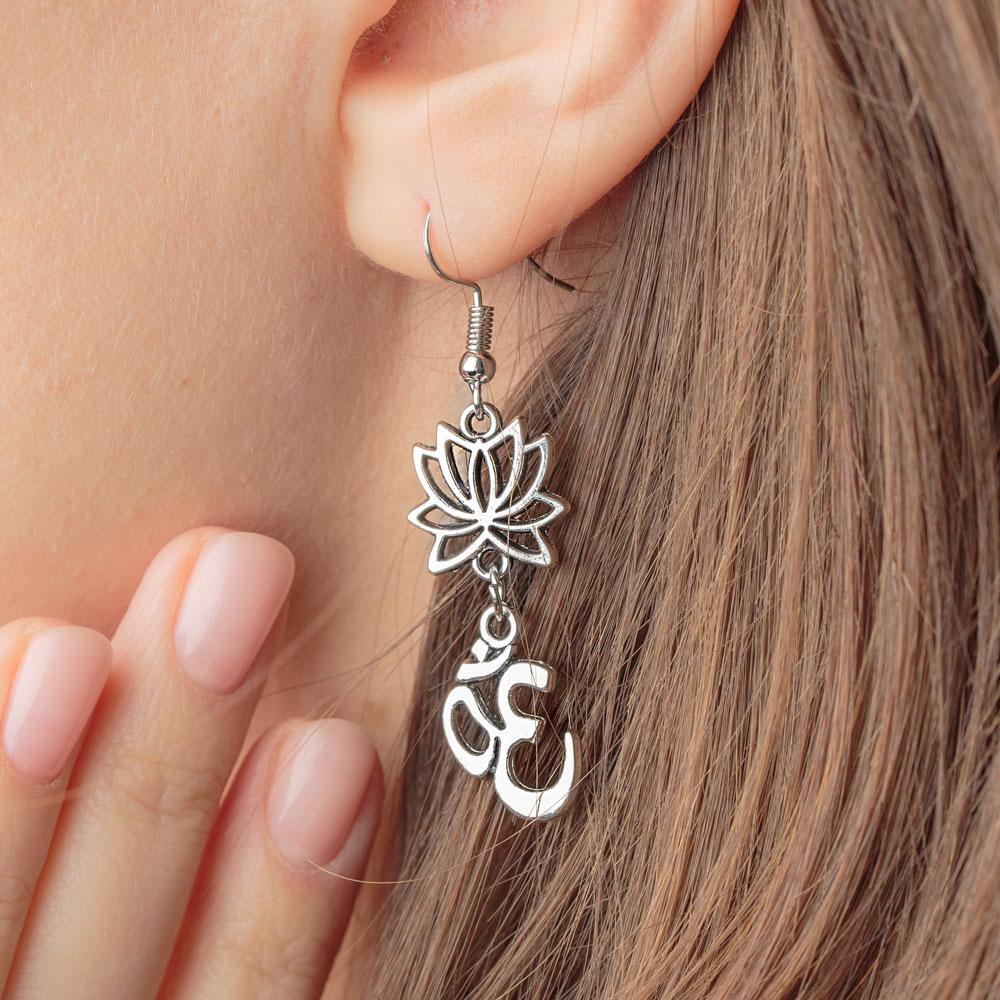 Rediscover your spiritual insights with these wonderful earrings featuring powerful symbols of the Om and Lotus flower bring a magical combination of spiritual wealth!