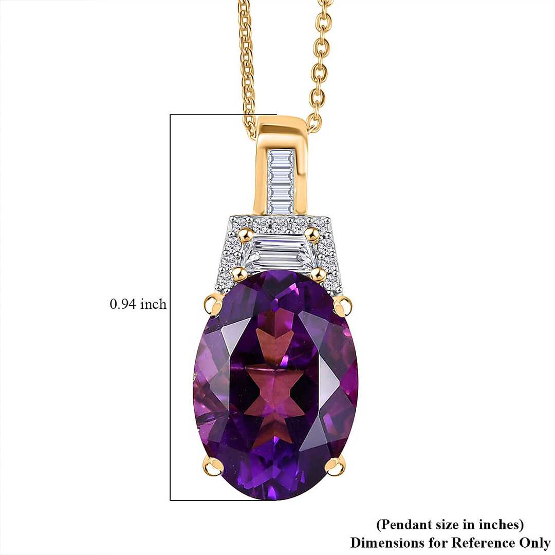 These pendant necklaces are crafted in the bold lines and symmetry of the Art Deco era. Available in three variations, each piece highlights the regal beauty of Lusaka Amethyst, enhanced by sparkling Moissanite. Set in 18K Vermeil Yellow Gold over Sterling Silver, they combine timeless design with the rich energy of gemstones.