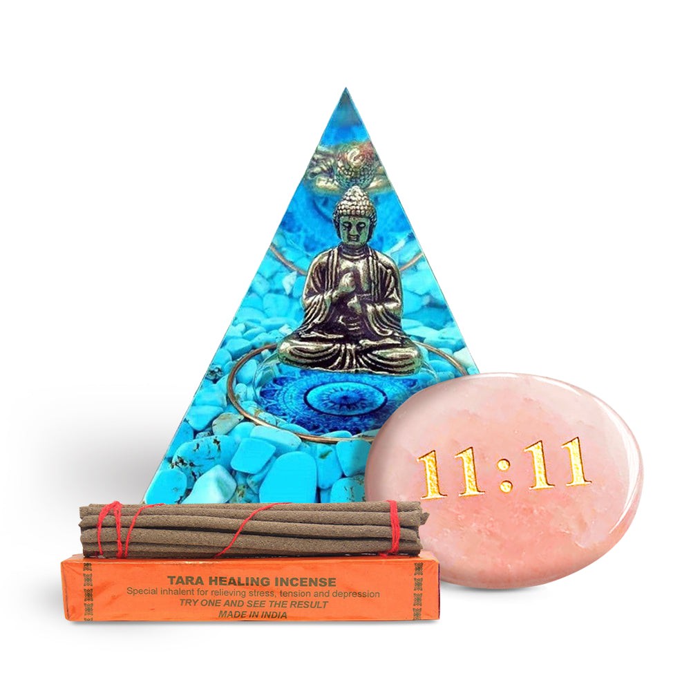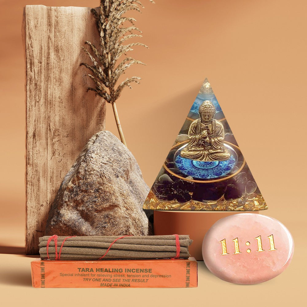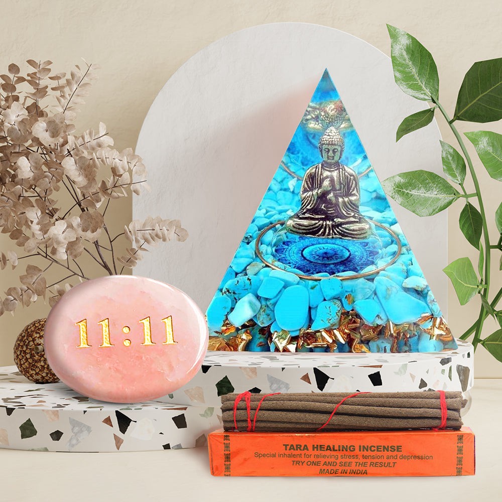 Step 1: Place the Buddha Orgone Pyramid in your meditation space as it is known to cleanse the negative energy in your surroundings and counteract the effects that electromagnetic waves have on your body.