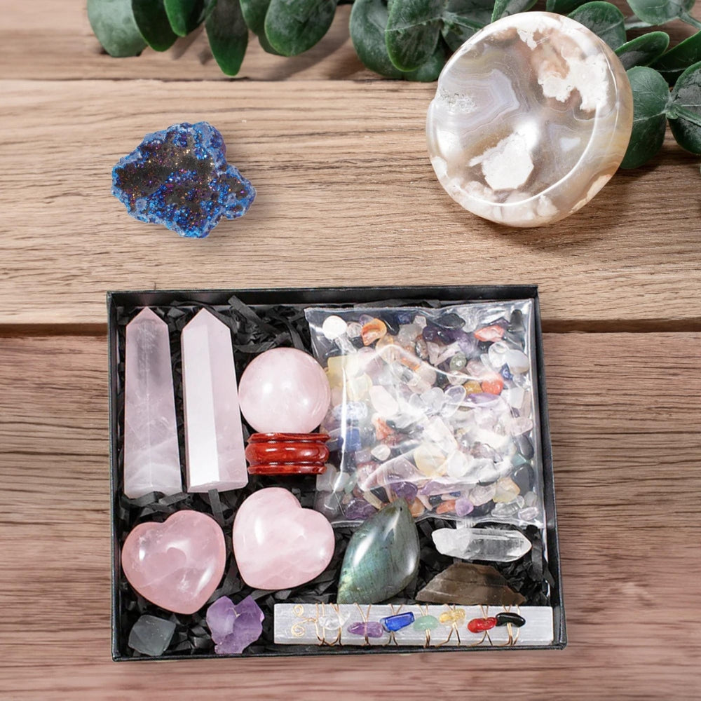 Rose Quartz Love Energy Crystal Set: This beautiful collection of Rose Quartz crystals, together with additional crystals such as Labradorite, Amethyst, Clear Quartz, and more, will bring the most loving energy into her life!