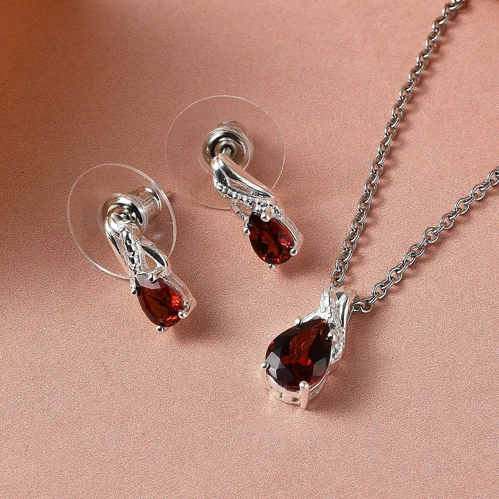 Celebrate your presence with the Mozambique Garnet Earrings & Pendant Necklace Set, a timeless duo designed for rich color and refined simplicity. Featuring deep red Mozambique garnets associated with passion and emotional strength, this set feels both grounded and radiant. Paired with a 20-inch stainless steel chain, it’s easy to wear daily while still feeling special enough for meaningful moments.