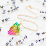 As the world gets out of control - take a second to remember the beauty you have within and all around you. The Rainbow Aura Quartz Necklace will serve as your daily reminder to be grateful and at peace.