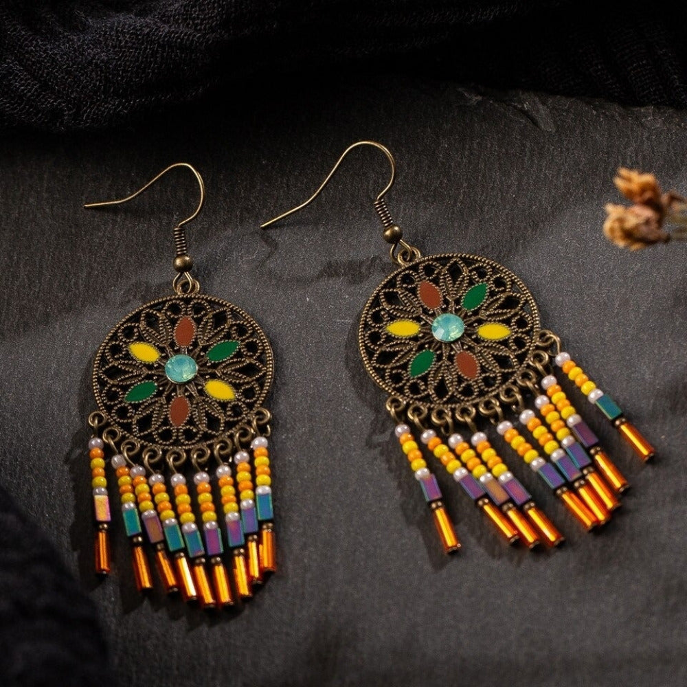 Crafted with beautiful ornaments and colorful details, these boho earrings will enhance your excitement about jewelry.