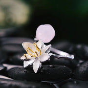 Our Rose Quartz Lotus Handmade Crystal Ring is inspired by the Lotus flower, a symbol of enlightenment, purity, and self-regeneration.