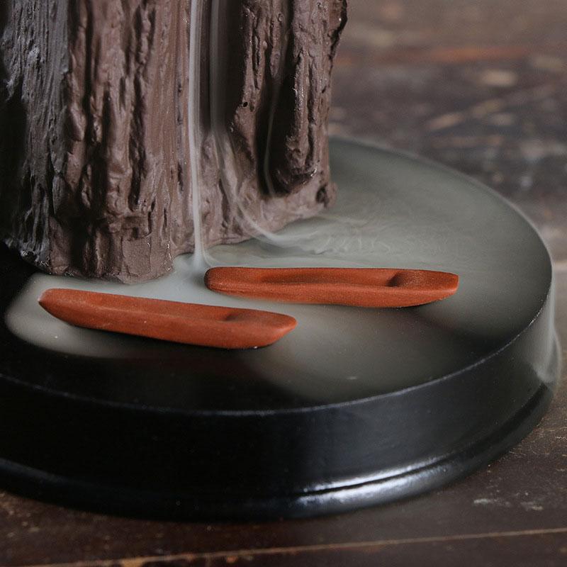 The backflow incense cone holder creates a mesmerizing waterfall effect as the smoke cascades down the burner, simulating the look of a miniature waterfall.
