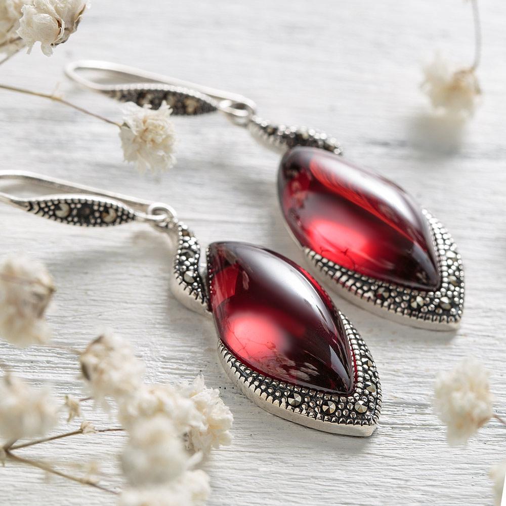 Red GarnetĀ stone earrings act as an energizer. According to color theory, red colorĀ radiatesĀ soothing warmthĀ enhancingĀ confidence, charisma, and sexual energy.