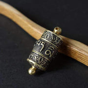 Tibetan prayer wheels (called Mani wheels by the Tibetans) are devices for spreading spiritual blessings and well being. This hand-crafted necklace is made to resemble the large prayer wheels. It has an Om Mani Padme Hum mantra rolled inside and it spins around.