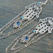 Our Spiritual Hamsa Evil Eye Earrings are not only visually appealing with silver and blue hues but will also connect you to universal spiritual protection.