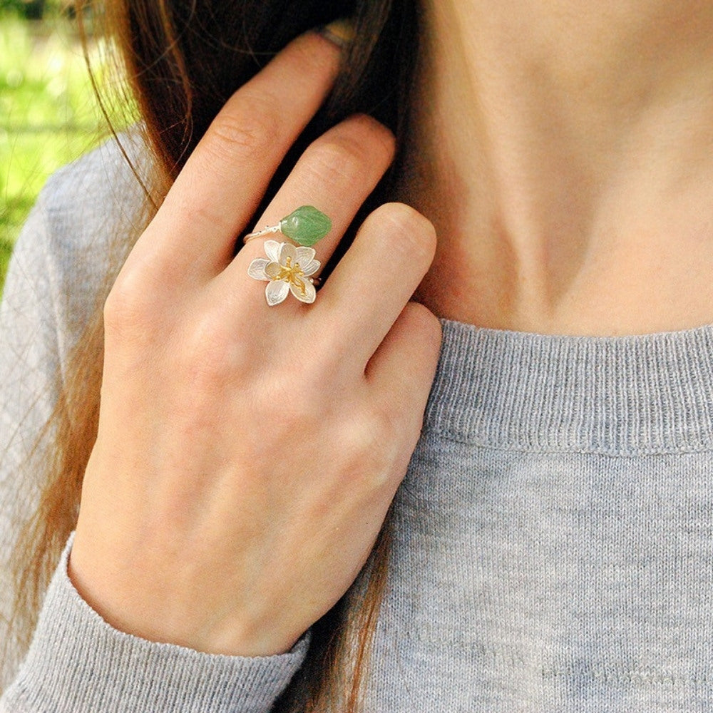 Flower rings are all about elegant details and unique looks. And this aventurine crystal ring doesn't shy away from having all of that and some extra!