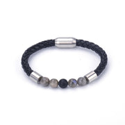 Materials: leather (diameter: 0.24inch/6mm) and Stainless Steel magnetic clasp