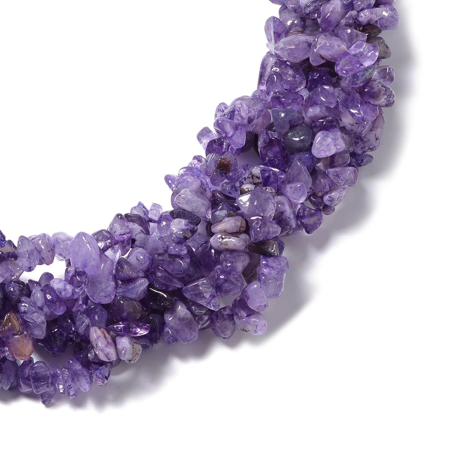 🌙 More than just a pretty gemstone, amethyst has been known for centuries as a powerful stone for clarity, balance, and protection. This multi-layered necklace, featuring an impressive 994 carats of raw, natural amethyst chips, works double duty—keeping negative energy at bay while elevating your look.