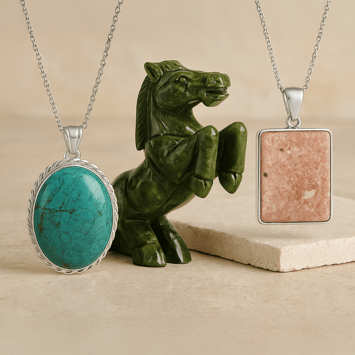 Serpentine Gemstone Horse Figurine: Hand-carved from genuine Serpentine stone, this figurine is a powerful symbol of freedom, strength, and movement. Each piece is unique, showcasing the natural beauty and distinctive markings of the stone.