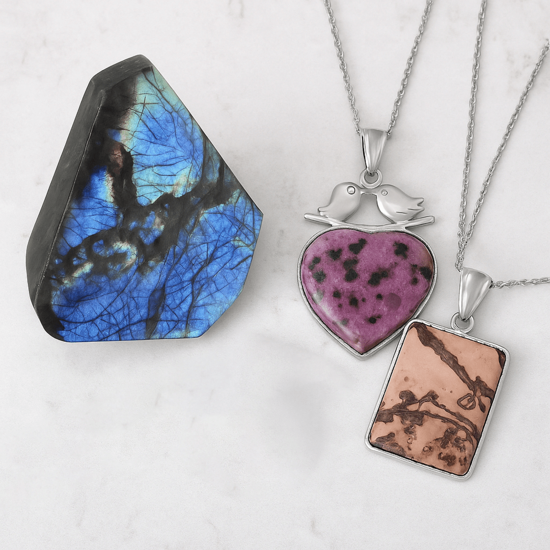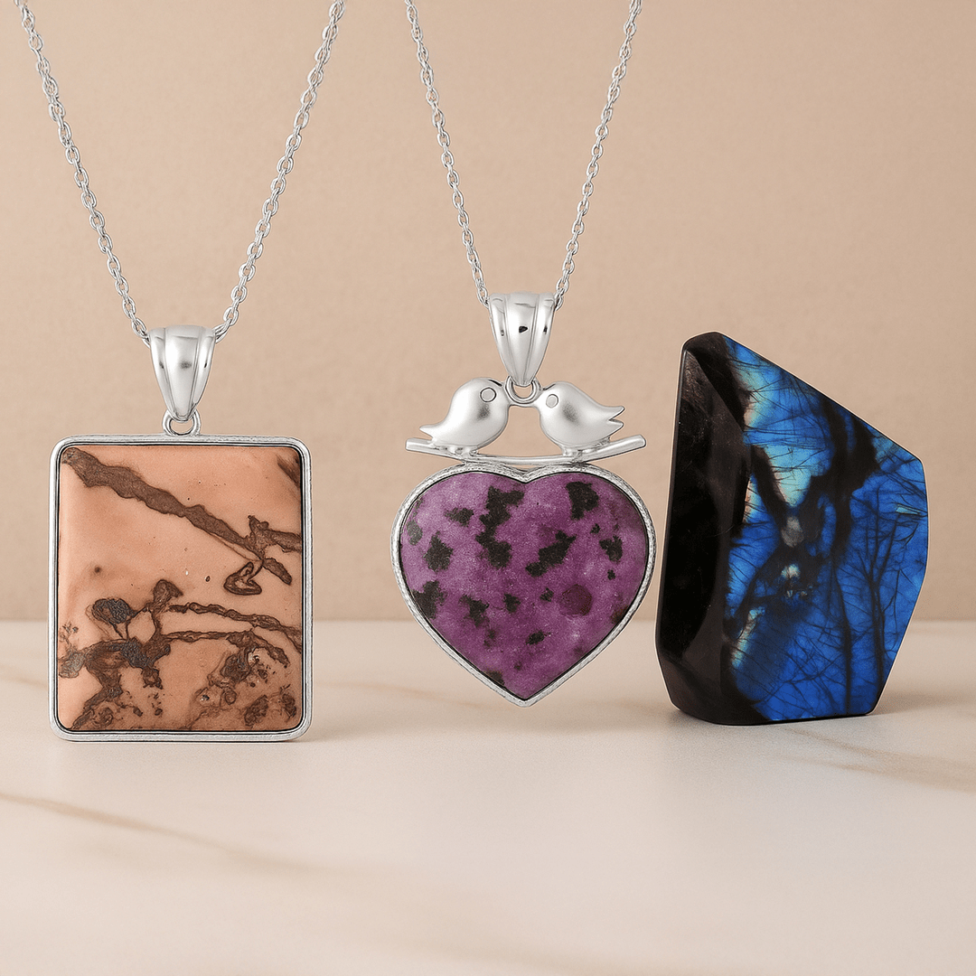 Purple Quartz Lovebird Crystal Heart Necklace: This delicate heart-shaped Purple Quartz pendant symbolizes emotional healing, love, and harmony. Set in a bezel-style frame with a stainless steel chain, itβs built to last, no matter what life throws your way.