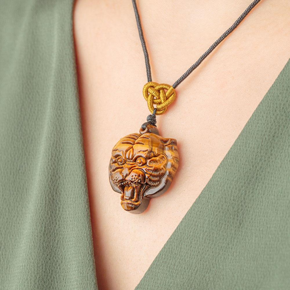 The Tiger Eye stone featured on this necklace is widely used as a talisman for personal power, motivation, and wealth and is known to be very helpful when dealing with depression, stress, and low self-esteem.
