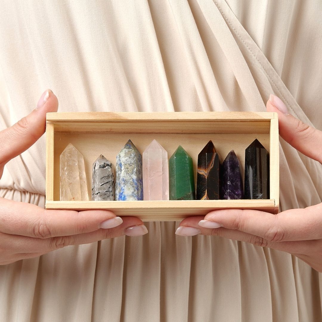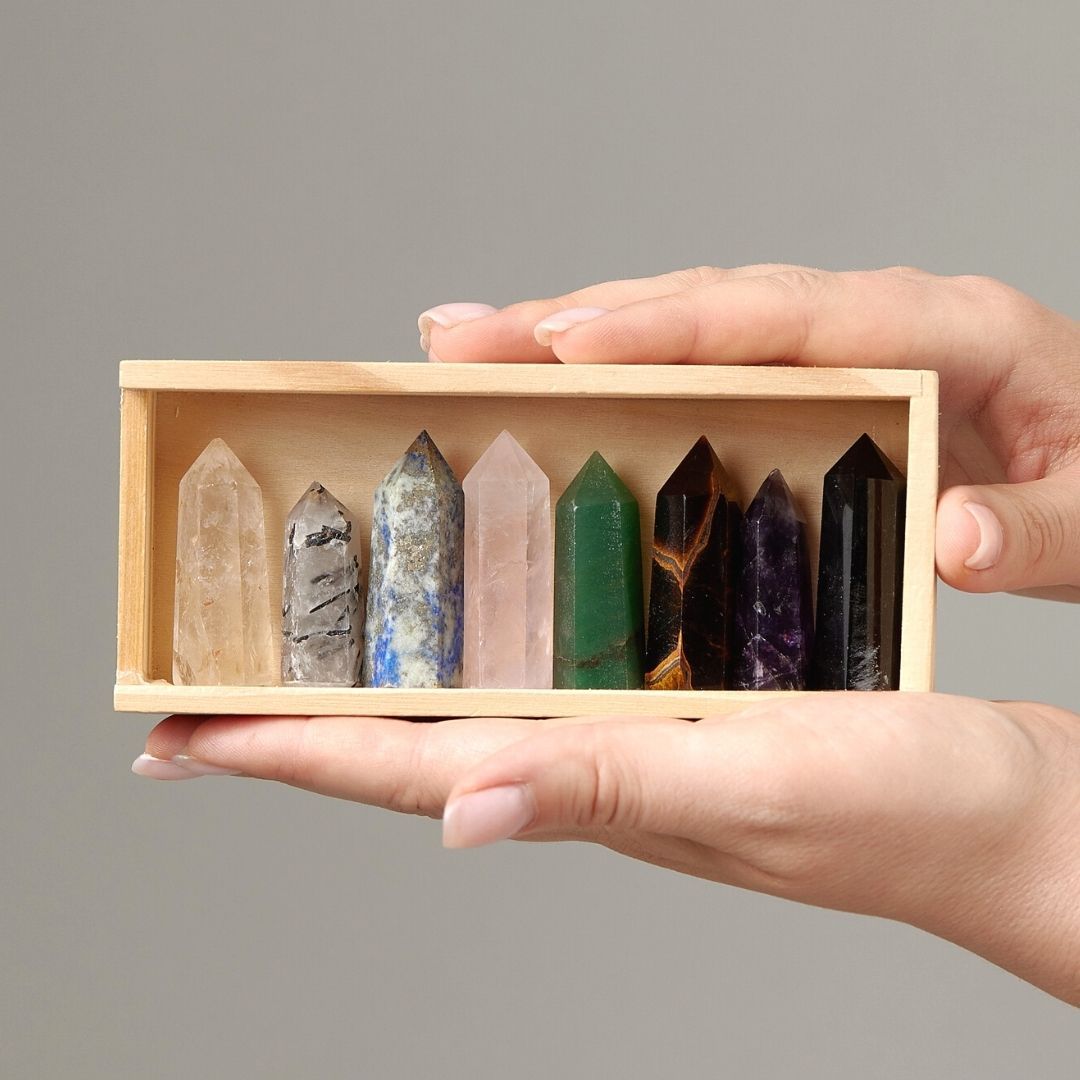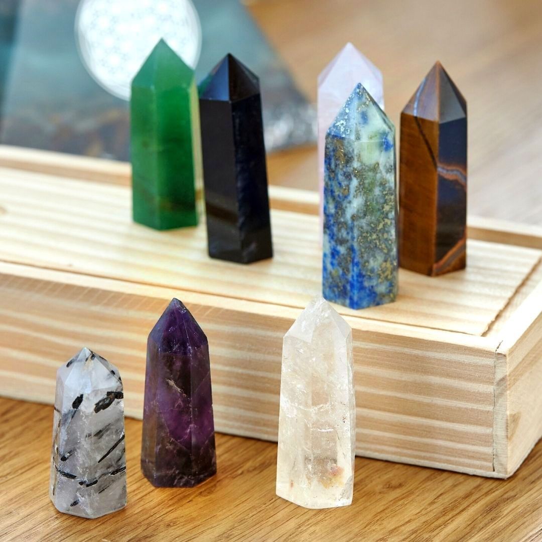 Crystals Inside: Rose Quartz, Obsidian, Lapis Lazuli, Clear Quartz, Tiger Eye, Amethyst, Aventurine Quartz, Rutilated Quartz